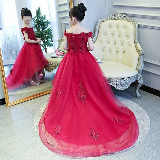 Girls Long Sleeve Lace Embroidery Dress