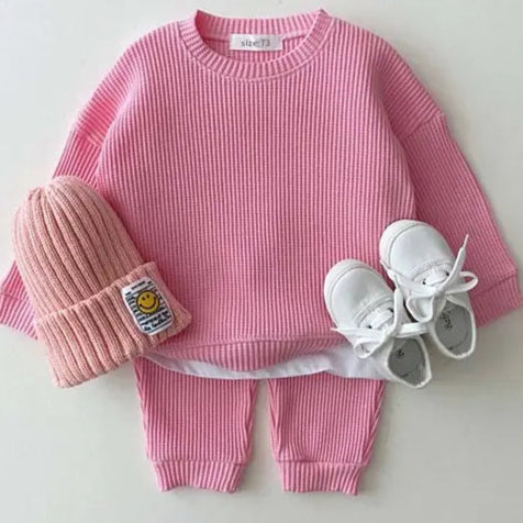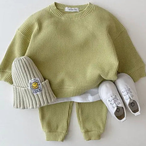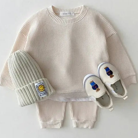 Refresh your baby's ensemble with the Waffle Knit Set Designed with the chic, modern infant in mind, this set is an essential addition for those who prioritize both style and comfort.
