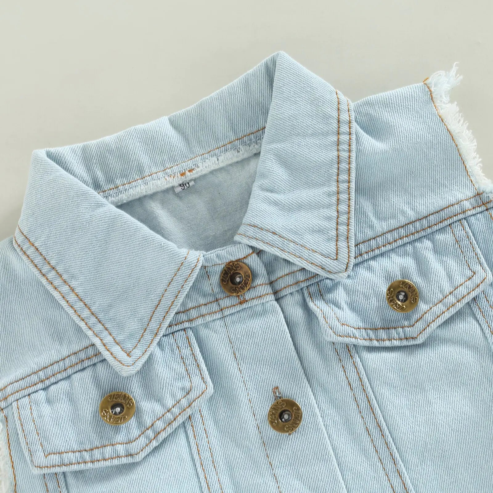Sweater dress & Denim Vest Introducing our Girl's Long Sleeve Sweater Dress & Denim Vest Combo, a perfect way to dress your little girl for any occasion. Sweater dress & Denim Vest Crafted from a high quality cotton & demin blend, this stylish set is sure to bring out the beauty and personality of your little one. Sweater dress & Denim Vest The long-sleeved dress features a timeless solid color and is designed to be comfortable for all-day wear. Sweater dress & Denim Vest The included vest adds extra charm with its denim buttons and tassels and comes together with the dress for a complete look that’s both casual and can be dressed up. Sweater dress & Denim Vest